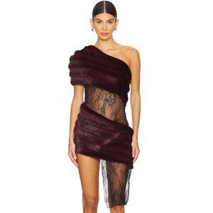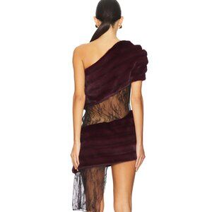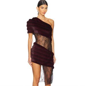 NEW Kim Shui Aubergine Faux Fur Combo Mini Dress in Bordeaux Purple Red Lace XS