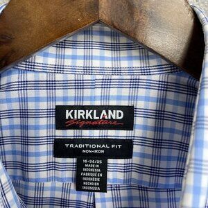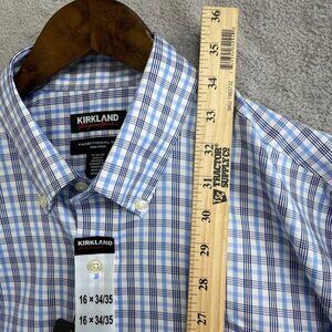 NEW Kirkland Signature Men's 16 34/35 Button down Dress Shirt Blue Plaid
