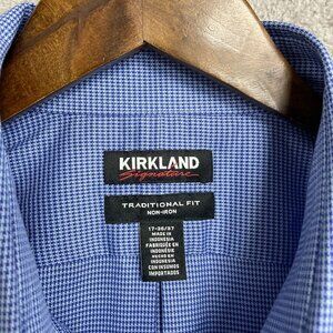 NEW Kirkland Signature Men's 17-36/37 Traditional Fit Blue Dress Shirt
