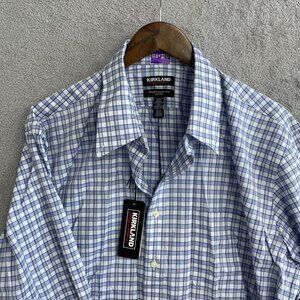 NEW Kirkland Signature Men's 17.5 Non-Iron Traditional Fit Dress Shirt Plaid