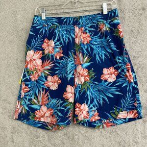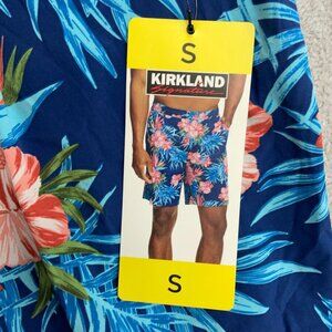 NEW Kirkland Signature Men's Size S Swim Shorts Floral Blue Hawaiian