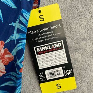 NEW Kirkland Signature Men's Size S Swim Shorts Floral Blue Hawaiian