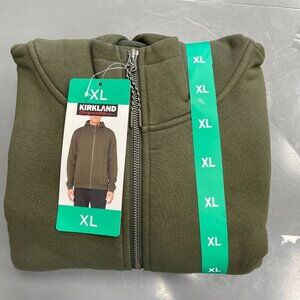 NEW Kirkland Signature Men's XL Olive Green Full-Zip Hoodie Jacket