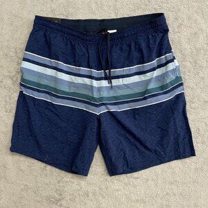 NEW Kirkland Signature Mens XL Swim Shorts Blue Striped Polyester Lined