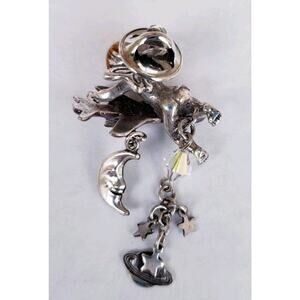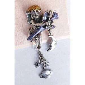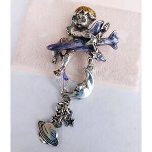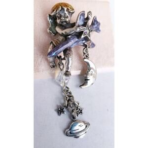 NEW Kirks Folly Cherub Airplane Crescent Moon Planet Star Dangles Brooch 2"