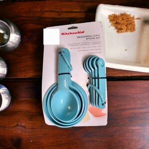 NEW KitchenAid Universal Measuring Cups & Spoons (9 Pieces) in Aqua D-rings