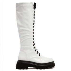 !! NEW !! Knee High Lack Up Combat Boots with Side Zip in Taupe