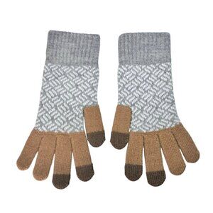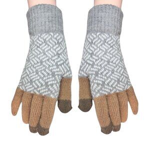 NEW Knit Winter Gloves Wool Blend Gray Tan Screentouch Friendly Sz. M