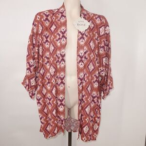 NEW Knox Rose Cognac Paisley Duster Cardigan Kimono Pink Women's Medium/Large