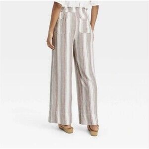 NEW Knox Rose Multicolor Cotton Blend Belted Elastic Waist Pull On Long Pants