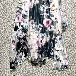 NEW Komarov Floral Print Chiffon Overlay Handkerchief Hem Dress, L