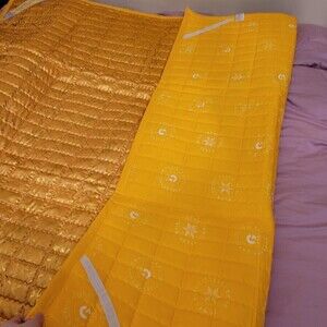 NEW Korean Yellow Gold Metallic Floral Quilted Bed Mattress Padded Covers