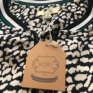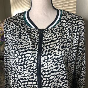 NEW Kori America Silky Black and White Animal Print Bomber Style Jacket NWT