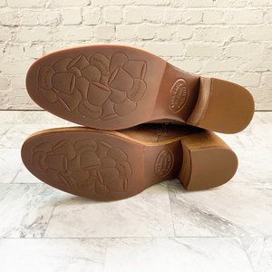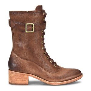 Details Burnished hardware furthers the utilitarian style of a lace-up leather boot, fitted with a contoured, arch-supporting footbed to ensure daylong comfort. Sizing: True to size. M=standard width - Round toe - Lace-up style; adjustable buckle-strap closures - Contoured footbed with arch support - Side zip closure - Block heel - Approx. 7 5/8" shaft height - Approx. 1.75" heel