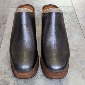 This is a pair of silver brand new Kork-Ease 'Veronica' heeled leather clogs, women's size 8. They are in perfect condition, no stains or damage, never worn. Let me know if you have any questions or would like pictures of anything else.
