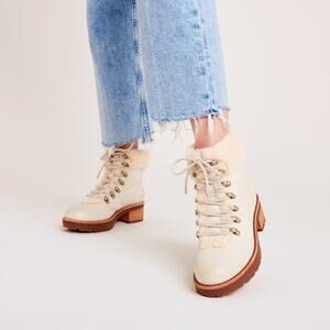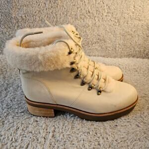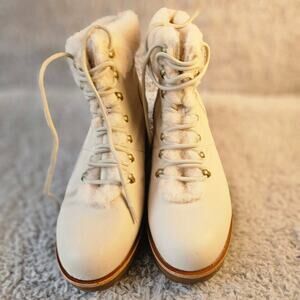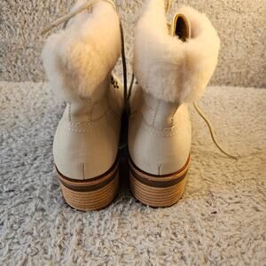 NEW Kork-Ease Women Winslet Genuine Shearling Trim Lace Up Boots Size 10M Cream