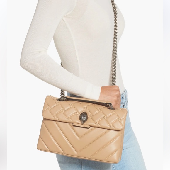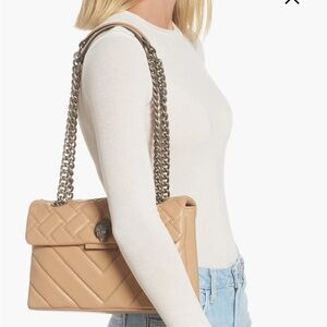 NEW Kurt Geiger Kensington X Quilted Leather Shoulder Bag tan