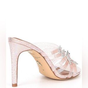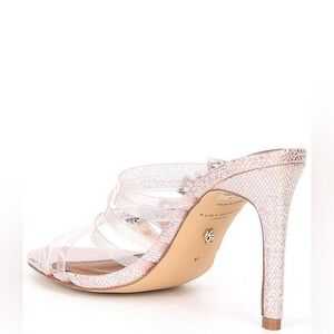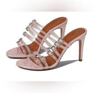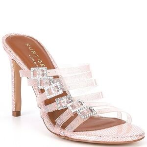 NEW Kurt Geiger London Pierra Vinyl Strap Embellished Buckle Dress Sandals pink