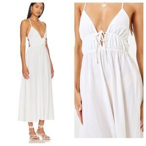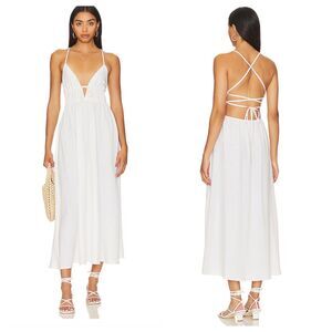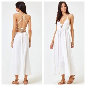 NEW with tags Gorgeous L Space Revolve Swimsuit Coverup. Midi Dress . Viscose,Cotton Linen Blend. Adjustable underbust tie. Elasticized waist. Strappy Back.Wear as dress or coverup Flowy Skirt Cream/White