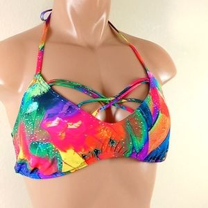 NEW LA BLANCA Bikini Top Swimwear Bandeau 14 Vacation Multi-color