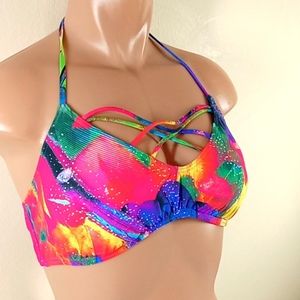 NEW LA BLANCA Bikini Top Swimwear Bandeau 14 Vacation Multi-color
