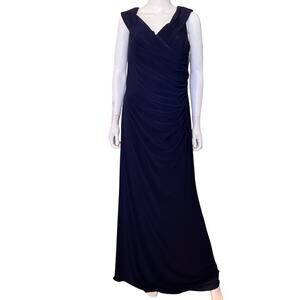 NEW LA FEMME Navy V-Neck Off The Shoulder Maxi Dress Size 12