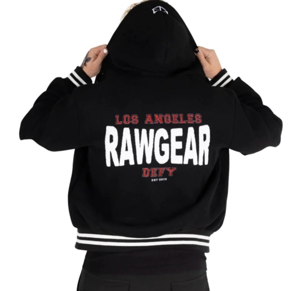 NEW LA Rawgear Embroidered Letterman Jacket Hoodie Black