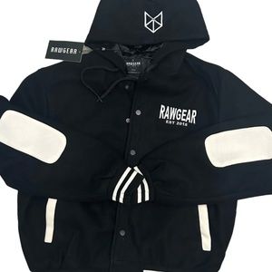 Rawgear Embroidered Letterman Jacket is the perfect addition to your wardrobe! With detailed embroidery along the back, a unique embroidered logo on the hood, and a silky soft inside. Don't miss your chance to snatch up this timeless classic today!
