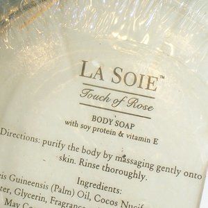 NEW LA SOIE Touch of Rose Body Soap in Custom Glass Dish Soy & Vitamin E Sealed