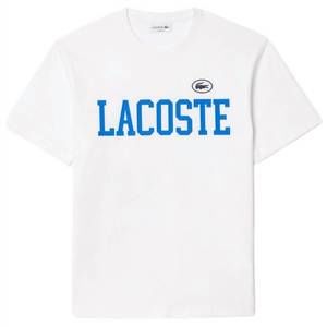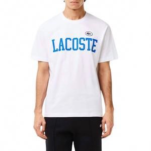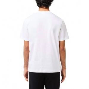 - Description: Presenting the Cotton Print & Badge Tee by LACOSTE, a premium choice for minimalist summer style. This short sleeve tee in classic white features a graphic pattern and a badge with a crocodile on the chest. Made from 100% organic cotton with rib edges of 97% cotton and 3% elastane, this tee offers a comfortable, classic fit with dropped shoulders. Closure: Pull on. Care: Machine wash, tumble dry.