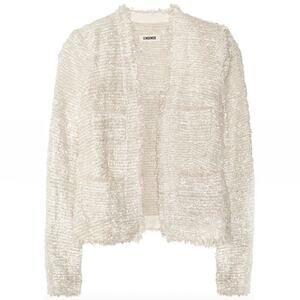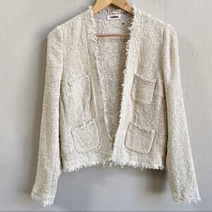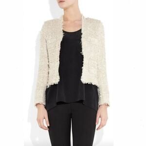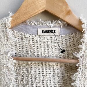 NEW L’AGENCE Cream Raw Hem Fringe Boucle Tweed Jacket