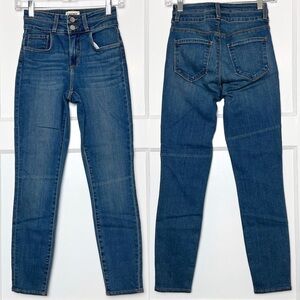 NEW L’AGENCE High Rise Stacked Waist Double Button Denim Skinny Ankle Jean 24