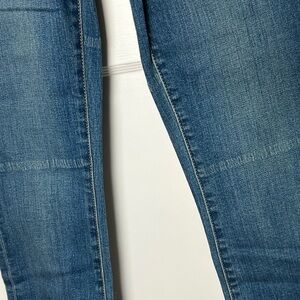 A stacked waistband adds subtle difference to these sleek stretch skinnies. Crafted from a premium stretch denim in a distressed medium indigo wash.