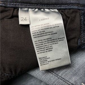 NEW L'AGENCE Mid Rise Dark Wash Premium Stretch Denim Cigarette Skinny Jeans 24