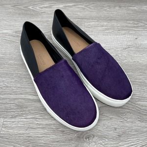 NEW - L'AGENCE Calf Hair Leather Slip On Sneakers in Black & Purple - Size 9.5