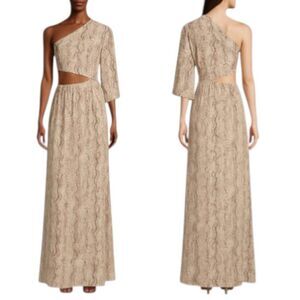 NEW L’AGENCE X-Small Sleek Neutral Maxi Dress Snakeskin Print One Shoulder Party