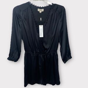 NEW L’AGENCE silk blend romper trim loop size 2 black bracelet s…