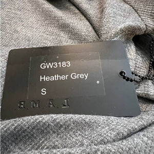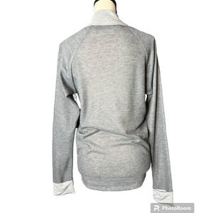 New L.A.M.B women's lightweight waffle thermal blouse in gray, big band v-neck in lighter gray, long sleeve, raw hem, size S
