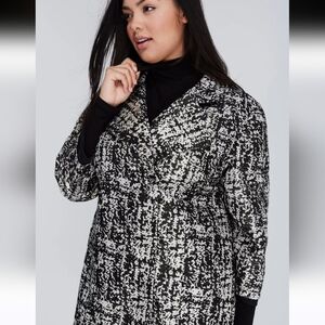 Elevate your style with this chic black and white tweed coat. Perfect for any occasion, it offers both comfort and elegance.