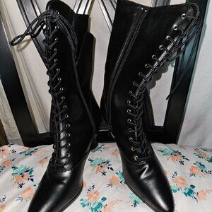 NEW LARGE BLACK PVC 28" TIGHT LACING BABYLON CORSET