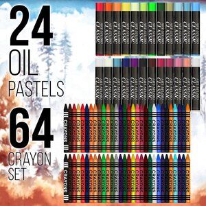 24 Watercolor Paint Colors, 24 Oil Pastels, 24 Colored Pencils, 60 Crayons with Wooden Storage box