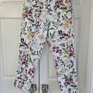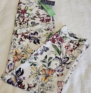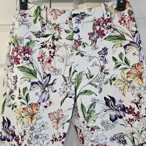 NEW LARK + GREY Petite Cropped Stretchy Zip Floral Print Pant Size 8