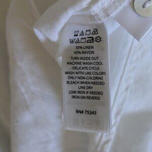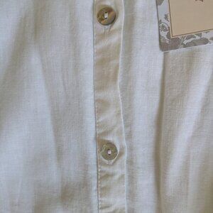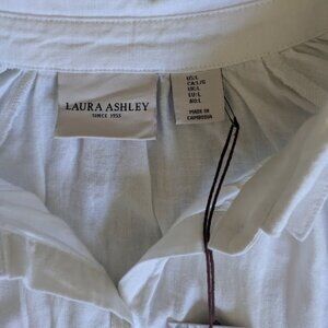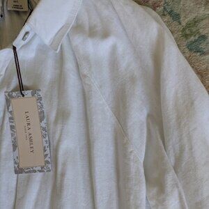 NEW LAURA ASHLEY Women Size L Shirt Top Button Down White Rayon Linen Raglan NWT