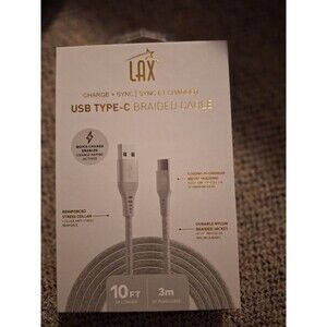 NEW LAX 10ft USB Type-C Braided Charge/Sync Cable