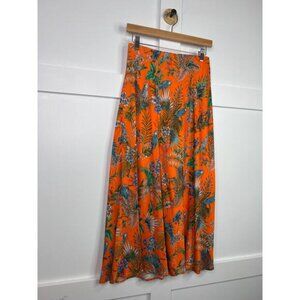 NEW L'Agence Clarisa Printed Bias Midi Skirt Orange Multi Parrot Size: Small