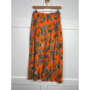 NEW L'Agence Clarisa Printed Bias Midi Skirt Orange Multi Parrot Size: Small