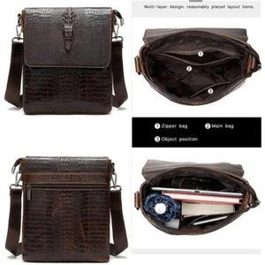 -Messenger Bag + Purse Material - The leather crossbody bag uses genuine leather for a smooth hand-touch leather feeling. The hand-crafted man messenger bag finish has rugged durability, and a unique crocodile embossed pattern, showing your fashion sense, sturdy metal zippers and great hidden stitching make it well-made and high quality, a great crossbody purse for going out. You deserve this leather laptop travel shoulder purse