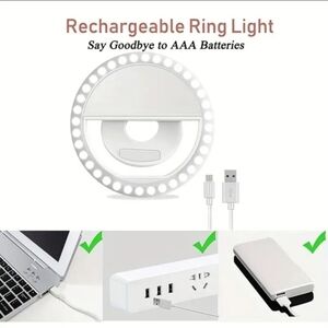 NEW LED Selfie Ring Light. USB Rechargeable 3 Settings - White