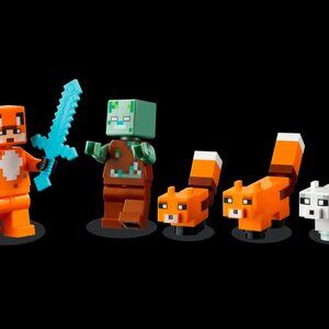 The set includes lots of popular mobs: a drowned zombie, fox, baby fox, Arctic fox and a hero figure in a fox skin.