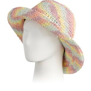 NEW . LELE SADOUGHI Raffia Rainbow Bucket Hat :pastel for women 253